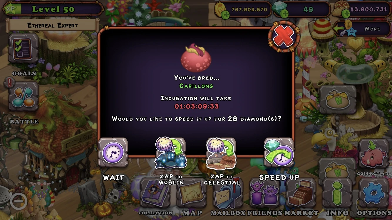It is best obtained by breeding Punkleton and Hoola. By default its breeding time is 6 hours. By default its breeding time is 1 day 7 hours and 45 minutes long.